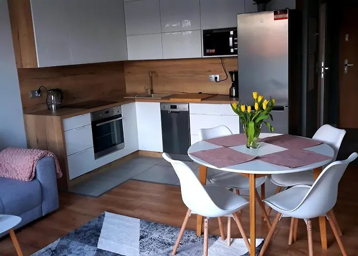 Das Apartment bietet eine voll ausgestattete Küchenzeile mit einem Kühlschrank, einem Herd und Glasgeschirr. Das Restaurant Tomasz Deker bietet europäische Speisen und liegt etwa 200 Meter von der Unterkunft entfernt. Die nächstgelegene Bushaltestelle Przymorze Wielkie ist in der Entfernung von 250 Metern. Die Umgebung ist auch ideal für sportliche Aktivitäten wie Wandern und Radfahren.